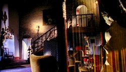 Der Modesalon wird zu einem geheimnisvollen, blau und rot ausgeleuchteten,
