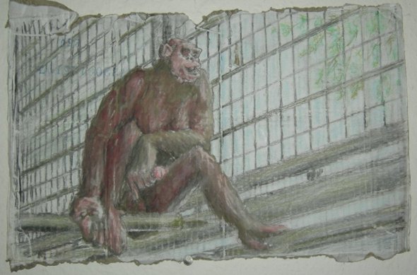Zoo Berlin Chimp (2007, Kreide, Pappe) |