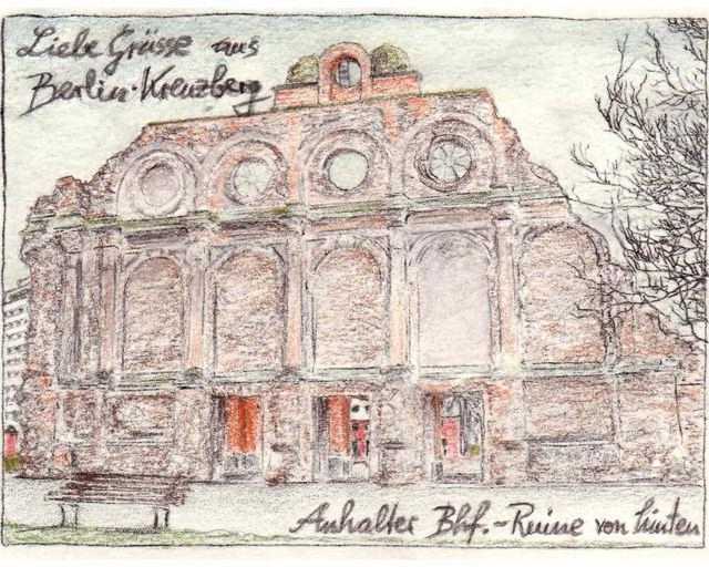 Liebe Grüße aus Berlin-Kreuzberg: Anhalter Bhf. (2007, Kreide, Papier) |